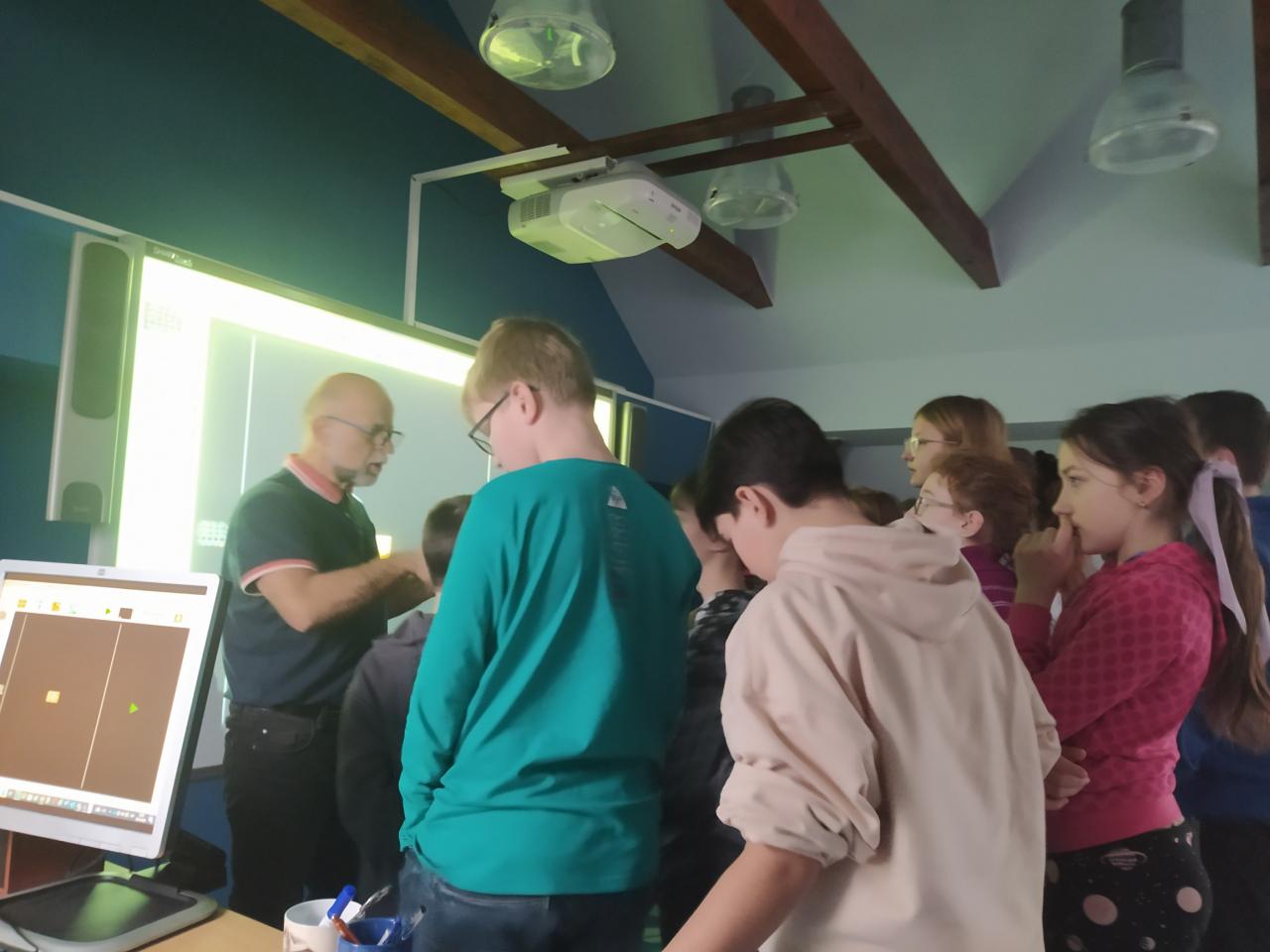 V pondělí 30.1.2023 nám pan Soukup ukázal vylepšenou verzi Baltíka, díky němuž se dá snadno učit základům programování. Žáci 4. a 5. třídy si vyzkoušeli, jak naučit kouzelníka postavit domeček, schovat se, otevřít a zavřít dveře, vybudovat zahrádku...