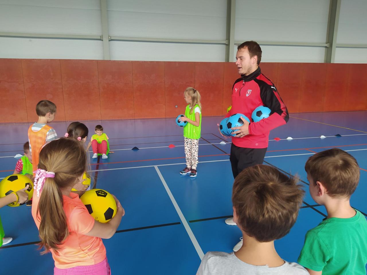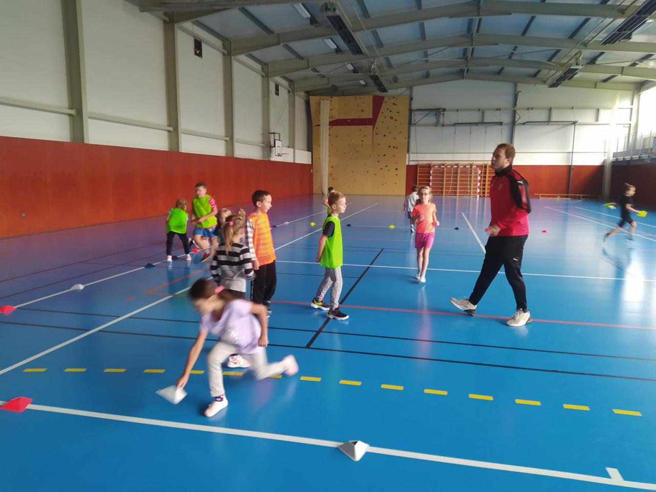 V pondělí 19.září jsme opět měli Školu v pohybu. Pod vedením profesionálního trenéra Fotbalové asociace ČR v projektu zaměřeném na podporu pohybových aktivit v mateřských a základních školách. Žáci 1. až třetí třídy si to v dnešním deštivém dni hodně užili.