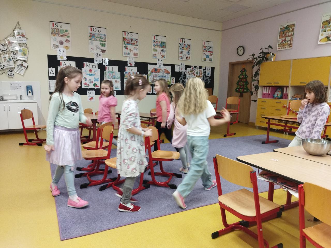 Tělocvik je naše nejoblíbenější hodina. Víme, že pohyb je velmi zdravý pro tělo i pro duši. Počasí nám letos moc nepřeje, cvičíme převážně v tělocvičně, nebo jdeme na vycházku. Když jsme moc unavení, protáhneme se a zacvičíme si i v hodině českého jazyka nebo matematiky. Dáme si třeba běhací diktát.