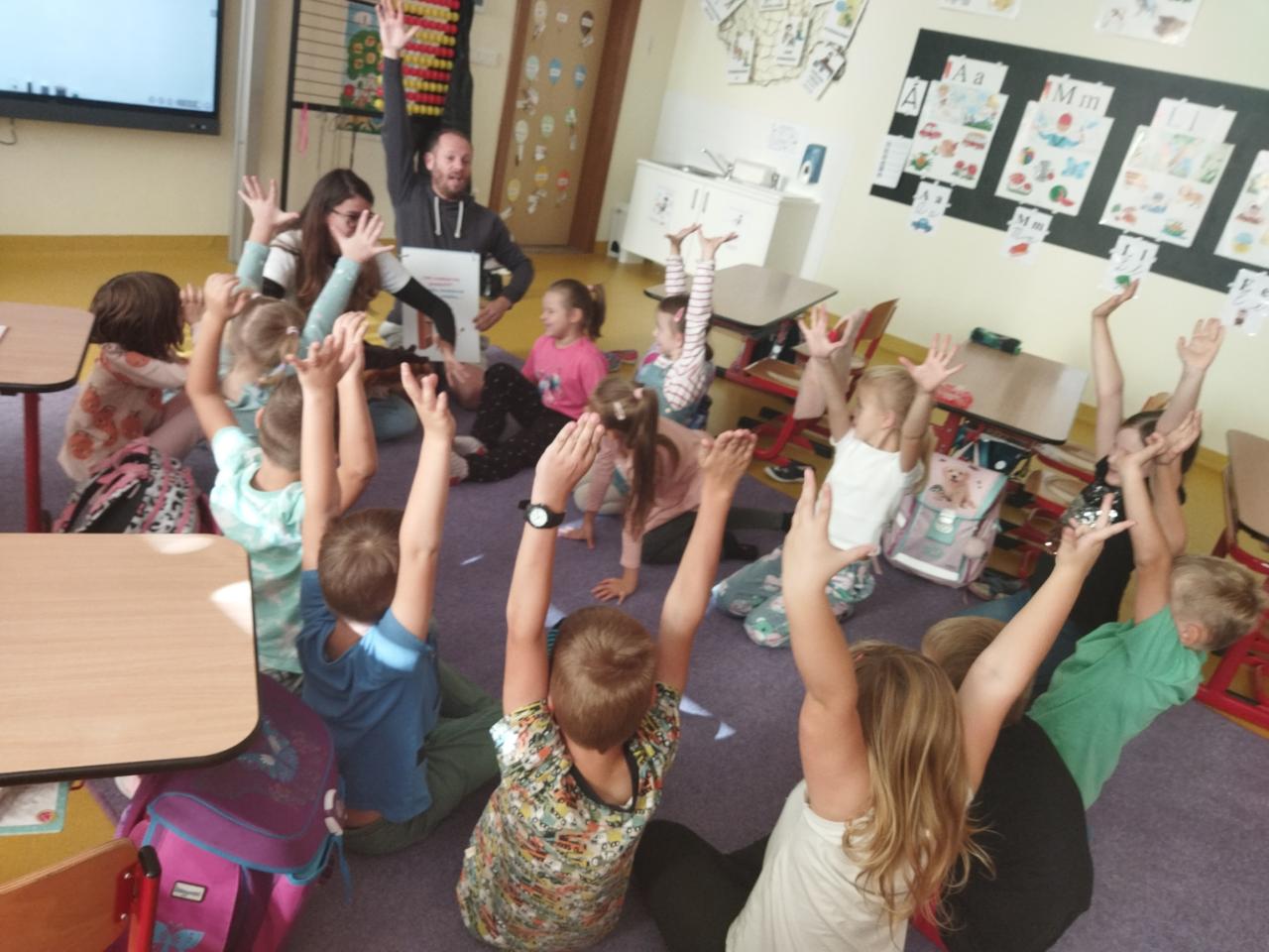 První třída se zapojila do projektu Zdraví s úsměvem. Maskot lev Vincent za námi přijel s programem Zdravé zoubky, Zdravý pohyb, Zdravé stravování a Duševní zdraví. Po novém roce nás opět navštíví. Už se moc těšíme.