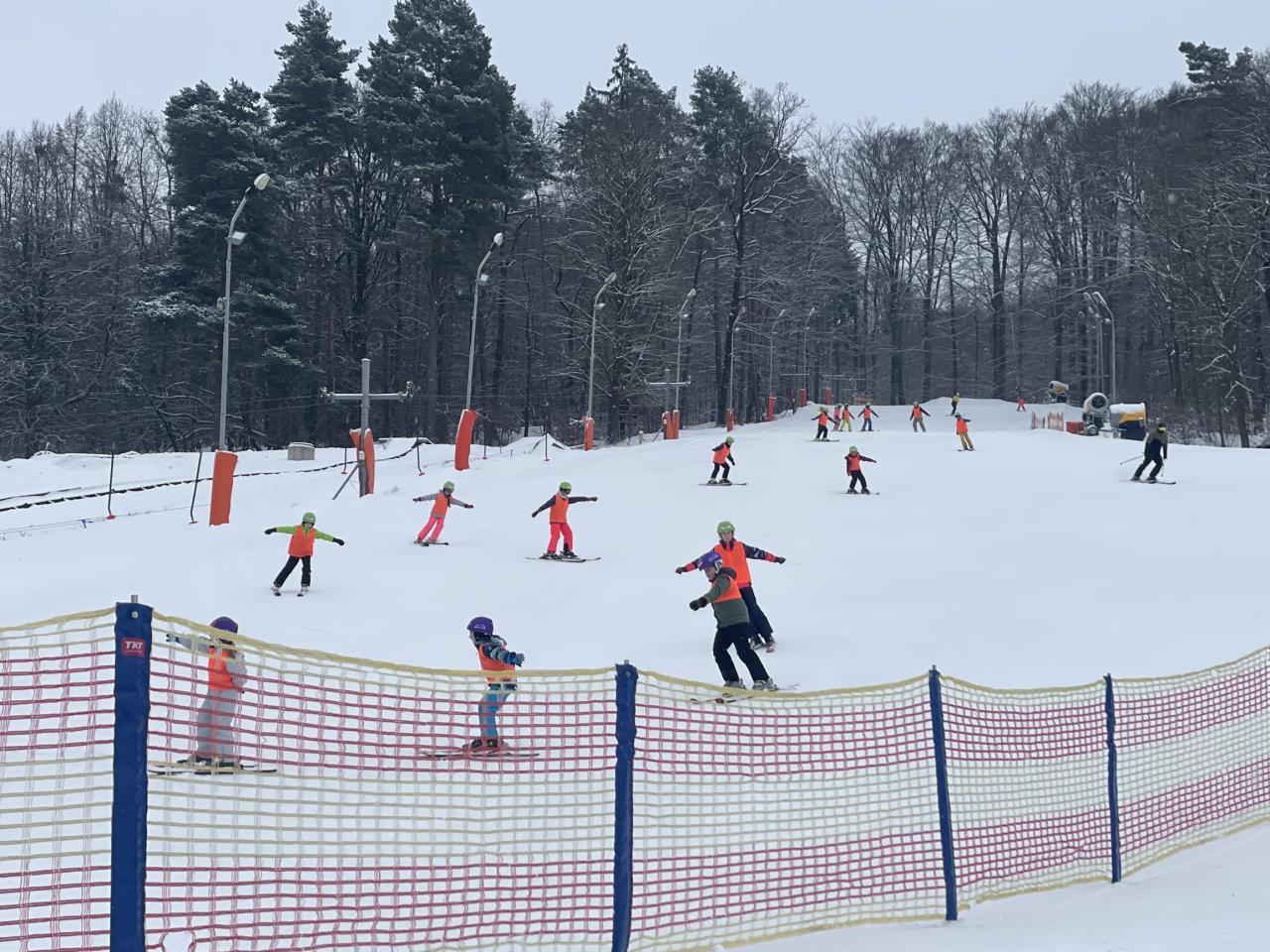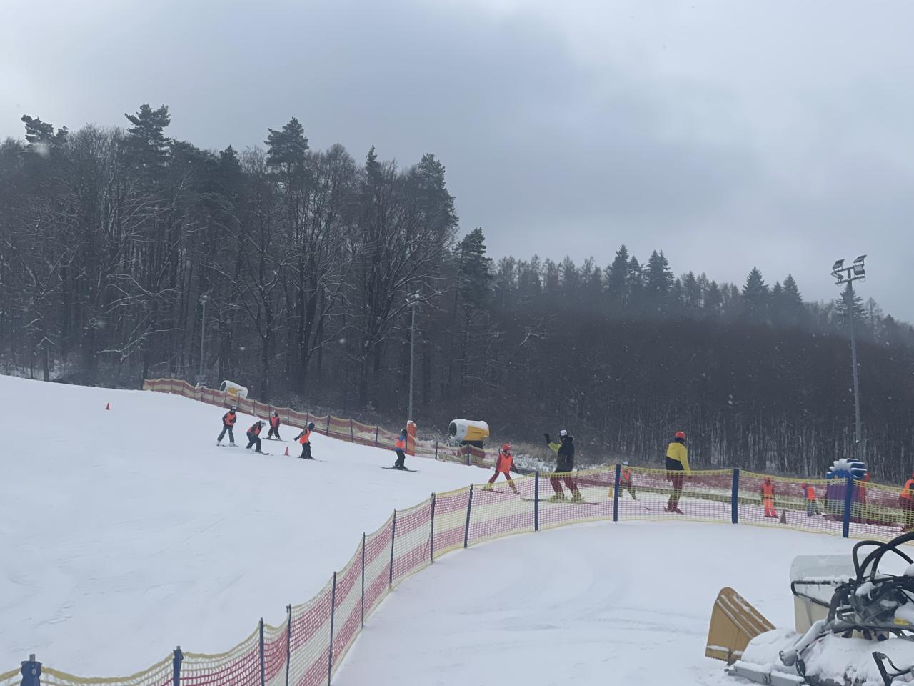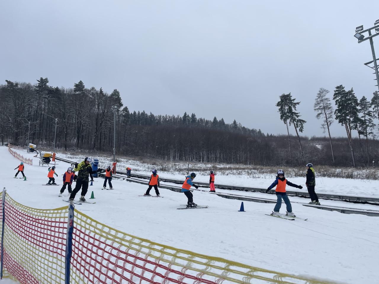 Dnes bylo na svahu velmi rušno, ale naši žáci si s tím bez obtíží poradili. Začátečníci dělali velké pokroky a krásně již točili zatáčky na cvičném svahu. Pokročilí se po rozježdění vrhli na větší svah a zdatní lyžaři se již dočkali hůlek. Celý den nás provázelo opravdu zimní počasí se sněhem.