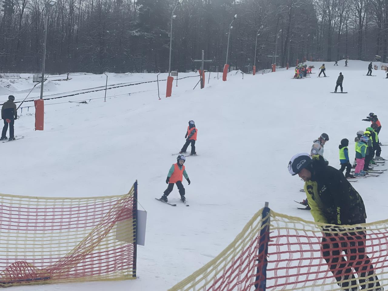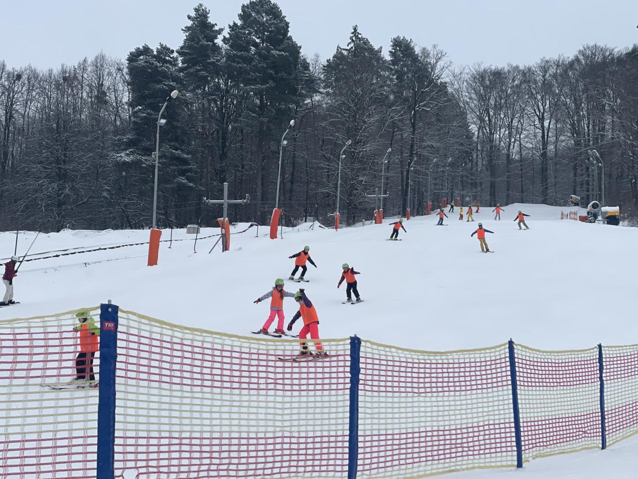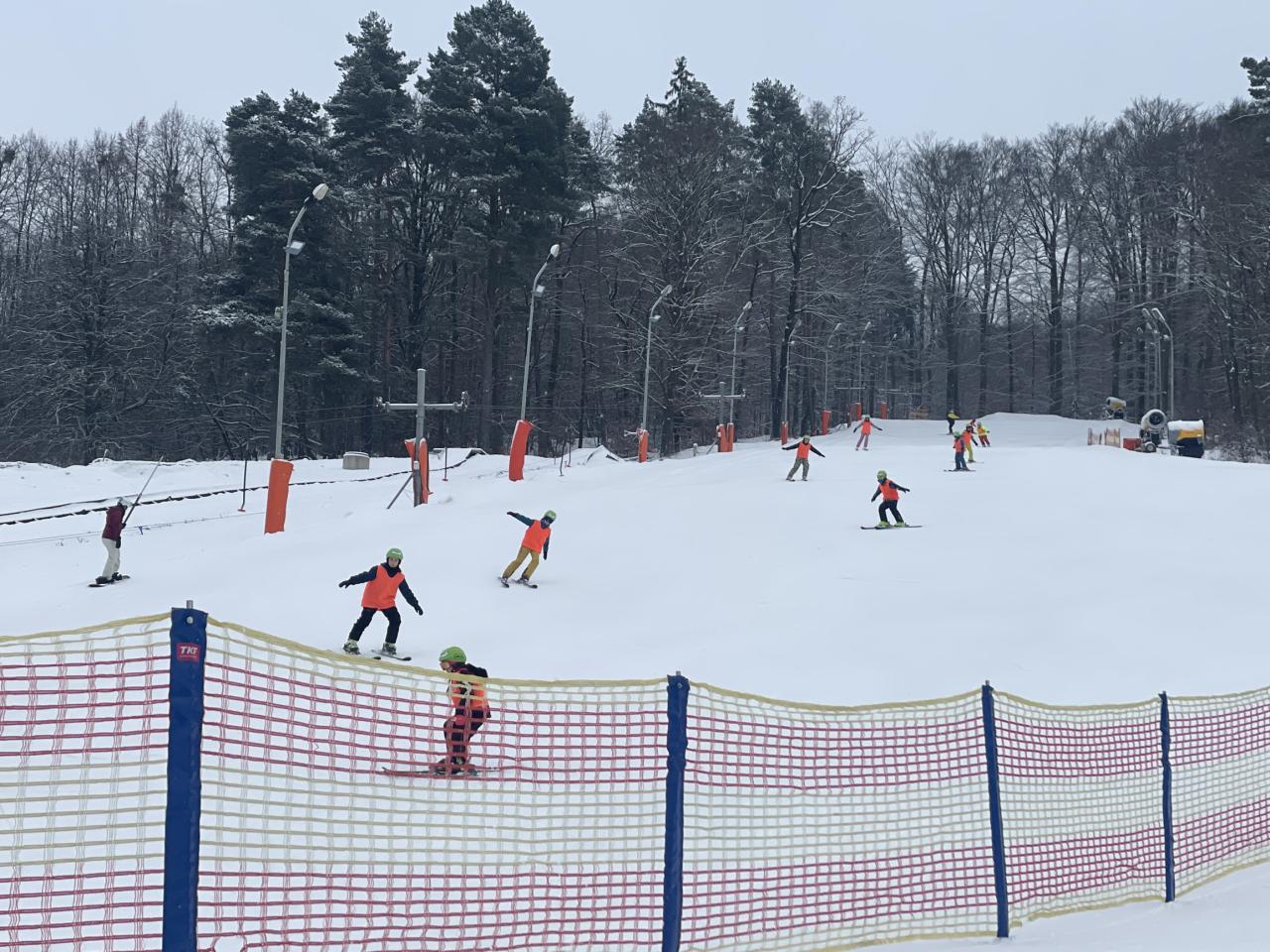 Dnes bylo na svahu velmi rušno, ale naši žáci si s tím bez obtíží poradili. Začátečníci dělali velké pokroky a krásně již točili zatáčky na cvičném svahu. Pokročilí se po rozježdění vrhli na větší svah a zdatní lyžaři se již dočkali hůlek. Celý den nás provázelo opravdu zimní počasí se sněhem.